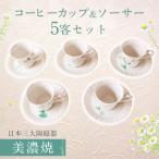 コーヒーカップ 5客 セットNB五草花 コーヒー碗皿セット 美濃焼 日本製 食洗機対応 かわいい ギフト プレゼント
