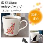 丸モ高木陶器 温感マグカップ 座り猫 ニューボーン 猫 猫柄 マグカップ マグ 陶器 ネコ 温度で変化 色が変わる 猫グッズ 日本製