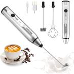 【並行輸入品】 Coffee Frotherハンドヘルド、USB充電式ハンドフローター ステンレス泡立て器2個付き、3速調整可能ハンドヘルドミルク泡立