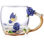 上品 フラワーグラスマグ ティーカップ 耐熱ガラス クリスタル ラスティーカップ ハンドル付き ホットビバレッジ、アイスティー、ース 姉妹、ママ、おばあちゃ