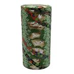 野口熊太郎茶園 茶筒 茶缶 大容量 200g 友禅和紙貼 中蓋付き 扇に鶴 緑 日本製 おしゃれ