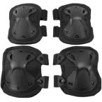 ニーパッド 膝パッド サバゲー プロテクター 膝当て 肘当て フリーサイズ(ブラック)