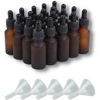 遮光瓶 スポイト付き 精油 アロマオイル 詰め替え 保存用 ガラス製 艶消しブラウン 漏斗付き 20本セット(15ml)