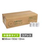 環境配慮型芯なし 感熱ロール紙 紙幅58mm×50mm×コアレス 65μ 中保存 もどろーる 100巻入 58mm×50mm×12mmと同等タイプ