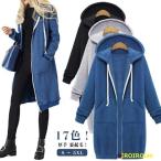 かわいい ジップアップ あたたかい ロング丈 無地 パーカー 厚手 ロング丈 ロングパーカー 裏起毛 秋 冬 ミディアム丈 パーカー 秋冬 フード