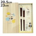 夫婦箸 桐箱 箸置付 ねこづくし ( 箸 お箸 ペア ねこ ネコ 猫 天然木 日本製 23cm 20.5cm )