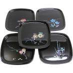 銘々皿 高岡漆器 絵変り貝入 (5枚組 化粧箱付)