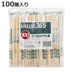 割り箸 バリュー365 ポリ完封竹丸箸 楊枝入 100膳入 ( 割りばし 個包装 爪楊枝入り 箸 お箸 セット 使い捨て 20cm )