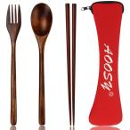 AOOSY カトラリー スプーン フォーク 箸 箸袋4点セット 通勤用食器セット 弁当用 携帯便利 学生用 天然木製ディナーセット
