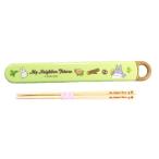 ◇ キャラクター スライド式 箸 箸箱セット となりのトトロ ( ネコバス ベージュ/薄グリーン系 ) lunc-skt-649493