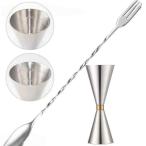 ジガーカップ 目盛り付き メジャーカップ 30ml/45ml バースプーン マドラー カクテル メジャーカップ 計量カップ ジガー カクテル シェーカーセット バーテンダ