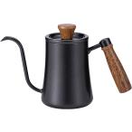ドリップポット 550ml コーヒーケトル 細口 温度計を差し込める口付き コーヒーポット 304ステンレス 木製ハンドル 目盛線内蔵 直火/IH対応 ブラック