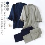 春夏 パジャマ 上下セット 七分袖 長ズボン 甚平 浴衣 メンズ パジャマ 前開き 綿 100 無地 おしゃれ 作務衣 ルームウエア ナイトウエア 薄手