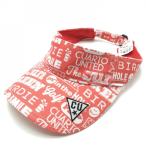 【美品】クアルトユナイテッド サンバイザー ピンク系×白 英字総柄 F ゴルフウェア CUARTO UNITED