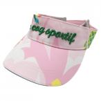 【超美品】ルコックゴルフ サンバイザー ピンク×グリーン ロゴ刺しゅう リーフ F(55cm〜57cm) ゴルフウェア le coq sportif