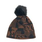 PEARLY GATES パーリーゲイツ 2023年モデル ボンボン付き ニット帽 総柄 ブラウン系 FR ゴルフウェア