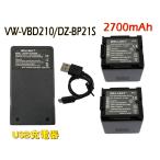 VW-VBD210 VW-VBD070 互換バッテリー 2700mAh 2個 + [ 超軽量 ] USB Type C 急速 互換充電器 バッテリーチャージャー 1個 Panasonic パナソニック
