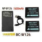 NP-W126 NP-W126S 互換バッテリー 2個 + デュアル USB 急速 互換充電器 バッテリーチャージャー BC-W126 BC-W126S 1個 富士フィルム