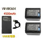 VW-VBK360-K / VW-VBK360 互換バッテリー 2個 + VW-BC10-K / VW-BC10 超軽量 USB TypeC 互換充電器 バッテリーチャージャー 1個 Panasonic パナソニック