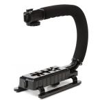カメラ スタビライザー C型 一眼レフ ローアングル撮影 ビデオカメラ グリップ ホットシュー付き 手振れ防止 ハンドル グリップ 1/4ネジ 手持ち