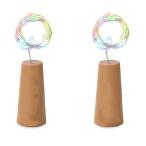 2個セット コルク型 イルミネーションライト LED ワインボトル 瓶 装飾 バー クリスマス 店舗 インテリア 電池式 (カラフル) PR