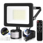 【即納】1台 センサーライト コンセント式 30W リモコン付き LED投光器 屋外 人感センサー 作業灯 防犯ライト IP65 LED 昼光色 6500K 3200LM 1年保証