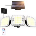 [検知角度UP]LEDソーラーライト 人感センサー2つ 光感 MAX3200LM 300°広角照射 リモコン付 4面発光 角度調整 IP65 玄関灯 ガレージ 駐車場 防犯 1個 6ヶ月保証