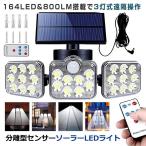 ソーラーライト屋外 明るい 3面 800ルーメン リモコン付き 人感センサー 分離型 3灯式 164LED 5mコード 太陽光充電 防犯 対策 玄関 庭 カーポート 駐車場 SATOU
