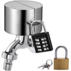 鍵付き蛇口ロック 水栓カバー ステンレス 南京錠 パスワード錠付 盗難 不正利用防止 いたずら防止 散水栓 (シルバー)