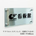 ステンレス銘板×ガラス調アクリル H200×W400mm 化粧ビス止め マンション看板 アパート銘板 表札 会社 事務所 おしゃれ マンション名看板 km-rf-24
