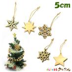 クリスマス オーナメント 5種セット 木製5センチサイズ 麻ひも付き 雪の結晶 星 日本製