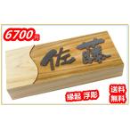木製表札 表札 裏穴 浮彫り 彫刻加工 国産桧 檜表札 天然銘木 18×8×3cm 逸工房