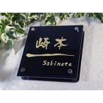 表札 おしゃれなガラス表札 ブラック 戸建 機能ポール 機能門柱 150mm×150mm