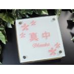 表札 ホワイト 風水 ガラス表札 花模様 人気の表札