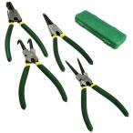 スナップリングプライヤー 4本セット ケース付き プライヤー サークリップ プライヤー 7インチ 穴用 軸用 曲爪 直爪