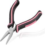 平ペンチ ギザなし 平ヤットコ 平口 平型ペンチ 手芸用ペンチ ビーズ アクセサリー用ペンチ (ピンク 黒い, 122mm)