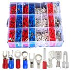 S.fields.inc 圧着端子セット1000個 ワイヤ コネクター 接続端子キット 圧着ペンチ Y形端子 丸形端子 R形 (ペンチ無)
