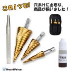 「切削油&ポンチ付」ステップドリル タケノコドリル 3本セット 六角軸 6.35mm インパクト対応 ドリルビット 穴あけ工具 DIY 木工 プラスチック アルミ対応