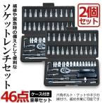 2セット ソケットレンチ セット 46点 工具 ラチェットハンドル 車レンチ スリーブ ラチェット レンチ トルク 六角 DIY 車 整備 修理 自動車 バイク 自転車