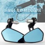 バイク ミラー バーエンドミラー 左右セット 五角形 ブルーミラー 汎用 アルミ製 オートバイ カスタム パーツ ブラック S-283-BM