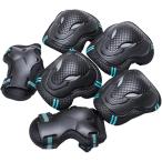 プロテクター キッズ 子供用 防具 保護パッド 自転車 手首 ひじ ひざ 6点セット(ブルー, Mサイズ)