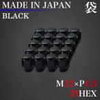 安心の日本製ラグナット ホイール ナット 20個 (袋)M12×P1.5 21HEX ブラック 12×1.5 スチール 黒