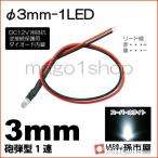 LED Φ3mm 1LED 白 ホワイト砲弾型LEDDC12V用抵抗、逆接続保護用ダイオード内蔵リード線付属 孫市屋