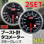 オートゲージ ブースト計 タコメーター 52Φ 2連メーター SM 2点セット スイス製モーター スモークレンズ ワーニング機能 52mm SM52AUTOA2SET