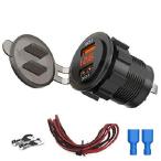 【並行輸入品】 USMEI デュアルQC3.0 USB充電器ソケット 36W 防水 クイックチャージ 3.0 電源コンセントアダプター 電圧計付き 12V/24V 車 ボート マリン