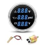 【並行輸入品】 ARTILAURA トリプルゲージセット 3in1 (水温+油圧計+電圧計) 2インチ 52mm オートボートゲージキット 水温センサー付き 油圧センダー マリンブラ