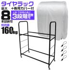 タイヤラック カバー付き タイヤ 収納 保管 タイヤ収納 スリムタイプ 8本収納 軽自動車用 大型自動車用