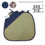 シートクッション ひも付き 車 畳 マット い草 たたみ 抗菌 和 和風 ブルー 花柄 馬蹄型 チェアパッド 座布団 約43×40cm 日本製