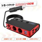 シガーソケット 急速充電 180W USB 4ポート QC3.0 3連ソケット 車載充電器 レッド ヒューズ カーチャージャー 12-24V