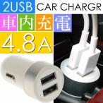 計4.8A 2連 USB電源 シガーソケット 白銀 iPhone iPad 車内でスマホ充電 スマートホン カーチャージャー as1626